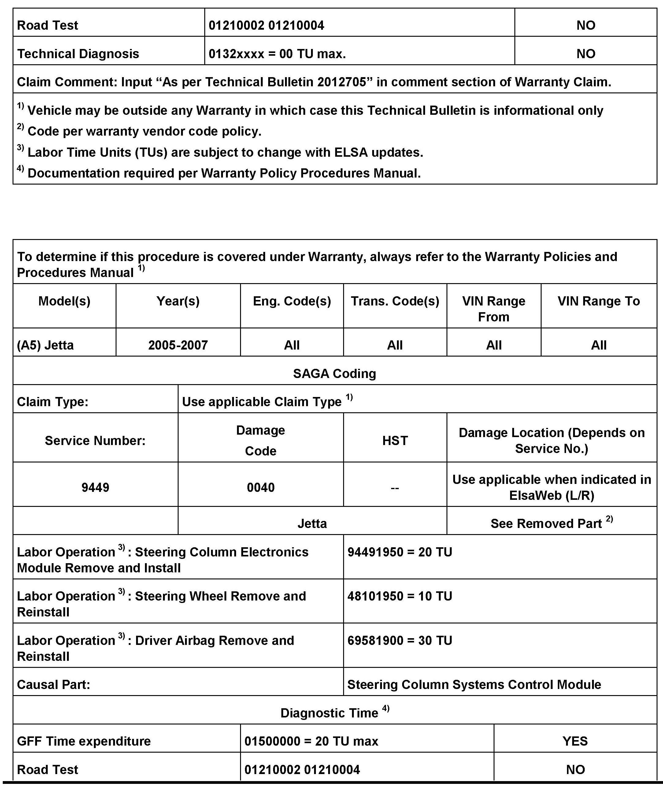 2012705 Supersedes T.B. V010615 dated September 19, 2006 to update warranty information.
