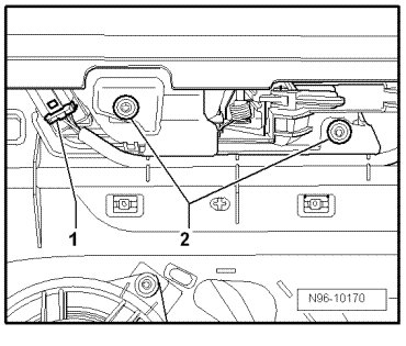 - Disconnect harness connector - 1 - and remove mounting bolts - 2 -.