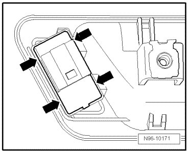 - Disengage retaining tabs - arrows - and remove interior locking switch from installation frame.