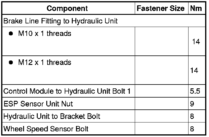 Fastener Tightening Specifications