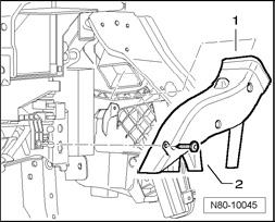 - Remove screw -2- (1.5 ±0.2 Nm) and remove right footwell air vent -1-.