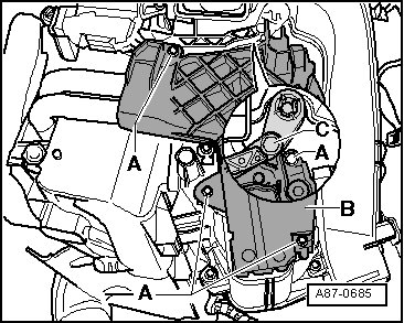 • If the temperature door lever - C - is a position that hinders access to the upper screw - A -. Change the position of the temperature door using the controls for hot air and fresh on, on vehicles with Climatronic with operating and display unit (e.g. "Hi" setting).