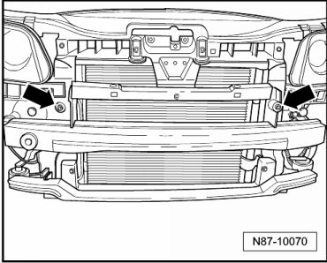 - Remove the radiator mounting bolts (7 Nm) - arrows -.