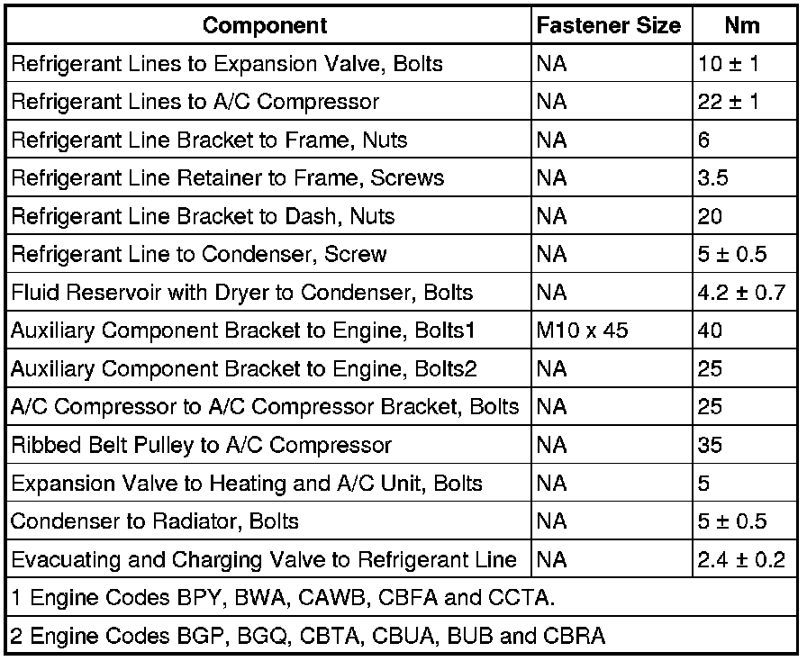 A/C Refrigerant Component Tightening Specifications