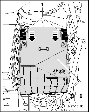 • In order to be able to remove the flat terminal housing - 1 -, air filter housing (only vehicles with Diesel engine), battery and battery console must be removed.