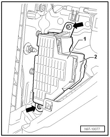 - Remove screws - arrows - and guide fuse panel - 1 - out toward inside, considering length of available cable.