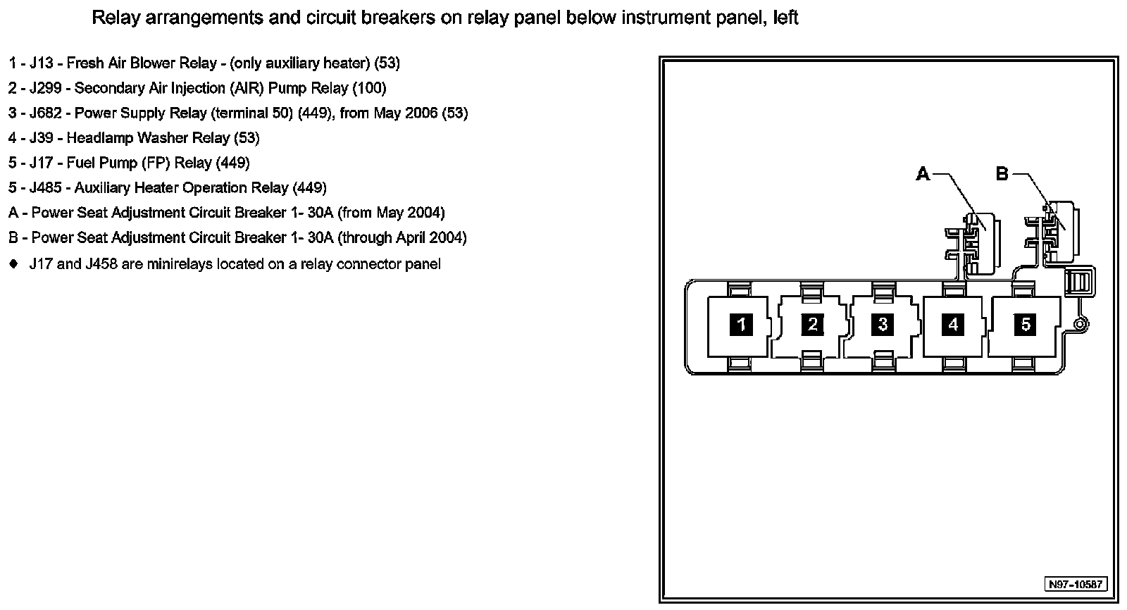Relay Arrangements And Circuit Breakers On Relay Panel Below Instrument Panel, Left: