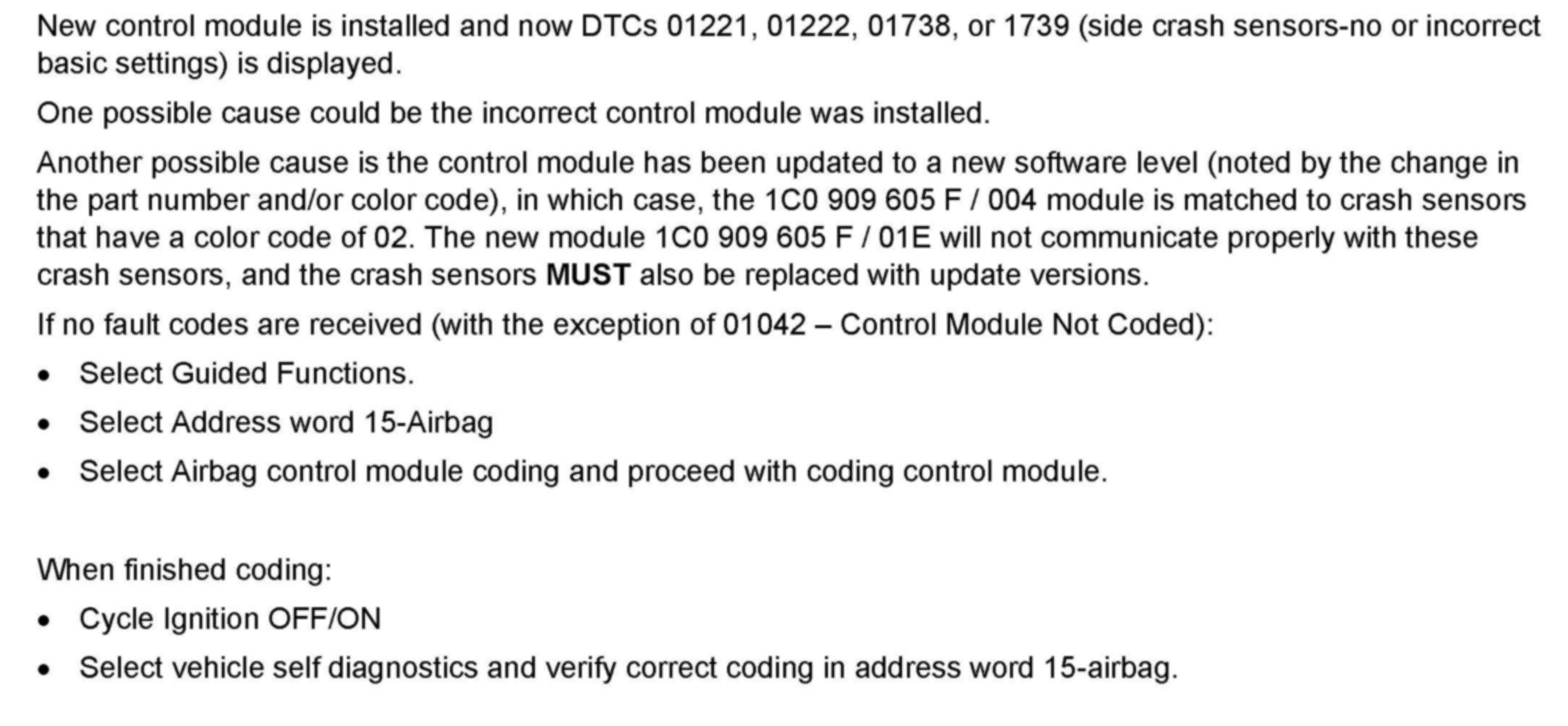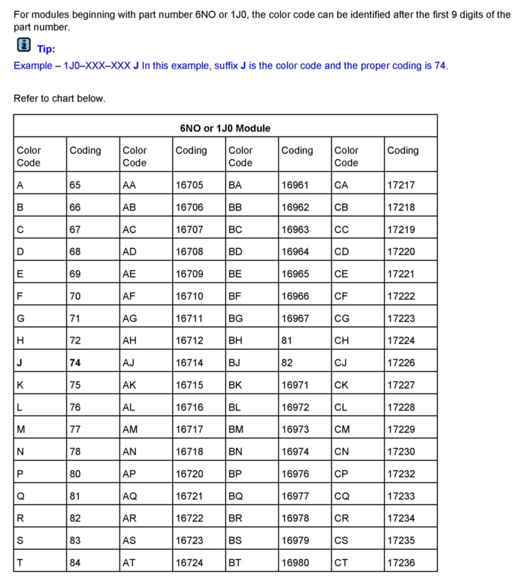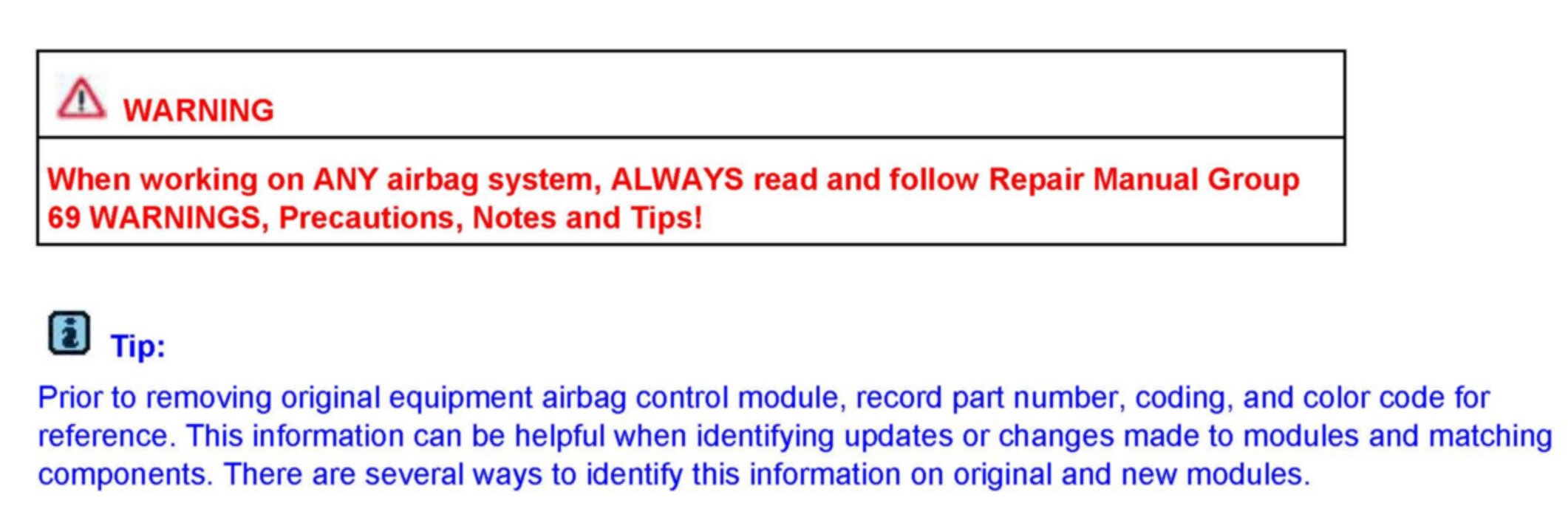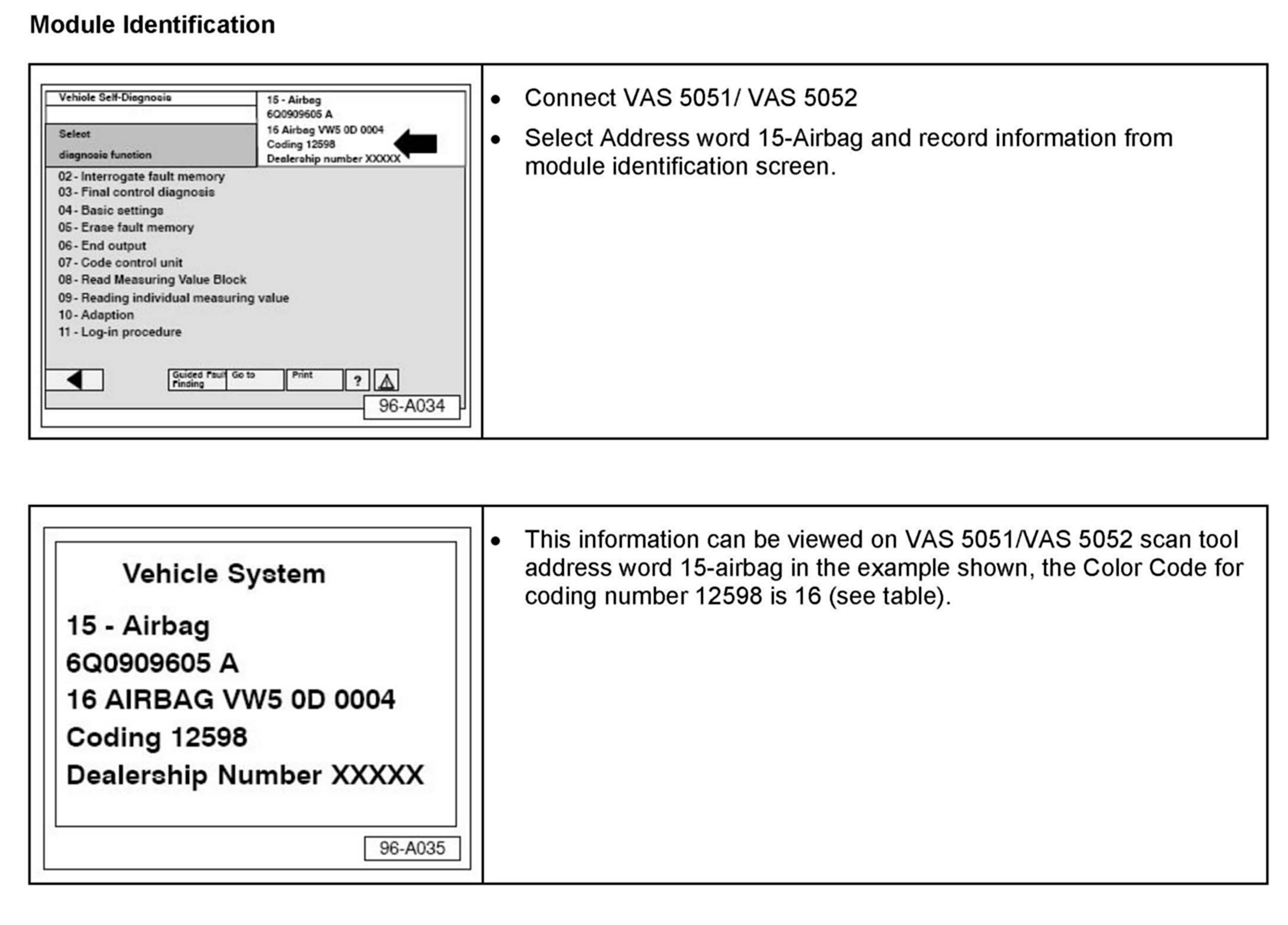 Module, Airbag, Color Code Identification and Coding