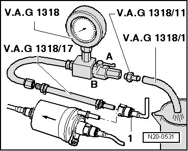 - Disconnect supply line - 1 - from fuel filter input.