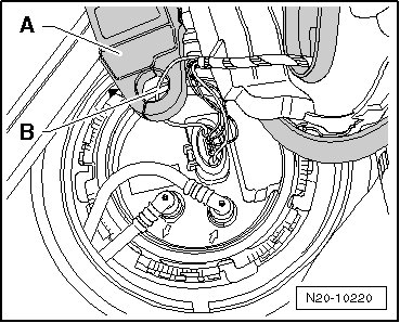 - Remove cover - 1 - from fuel delivery unit in direction of arrow - 2 -.