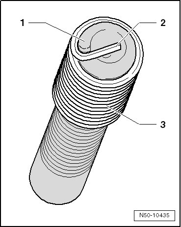 - Turn the threaded insert - 3 - onto the spindle until the drive peg - 2 - makes contact on drive tab - 1 - of installing spindle.