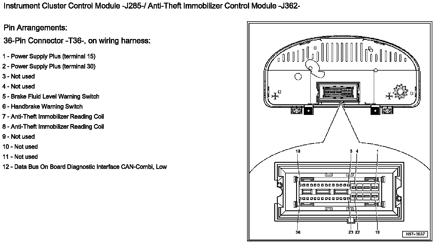 Instrument Cluster Control Module J285 / Anti-Theft Immobilizer Control Module J362