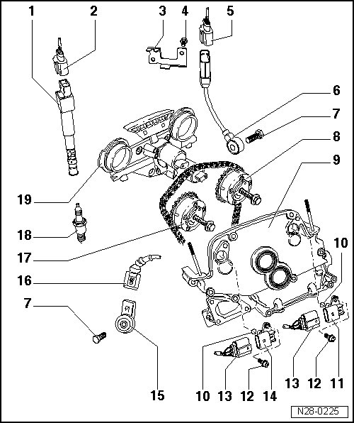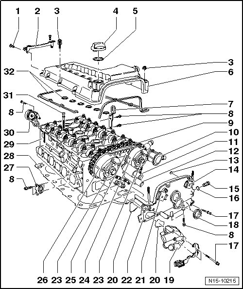 22 - Camshaft Adjustment Valve 1 (exhaust) -N318- => [ Cylinder Head and Cover Assembly Overview ] See Image Below.