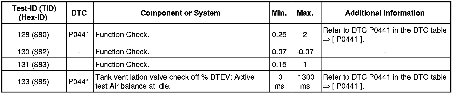 - If any component or system fails to meet the specified values, refer to Diagnostic "Mode 03: Interrogating Fault Memory" to check for stored DTC's or the corresponding diagnostic repair procedure.