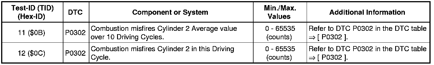 Test-ID 163 ($A3): Misfire Cylinder 2 Data