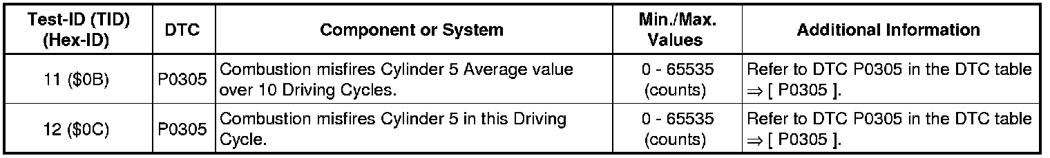 Test-ID 166 ($A6): Misfire Cylinder 5 Data