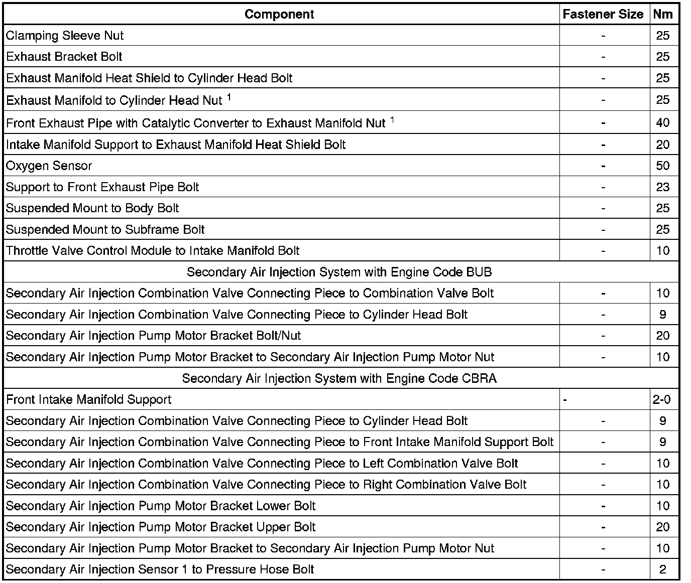 Fastener Tightening Specifications