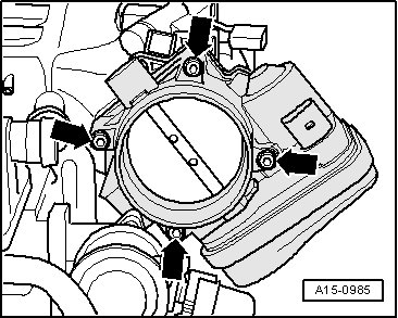 - Remove the throttle valve control module - arrows - from intake manifold.