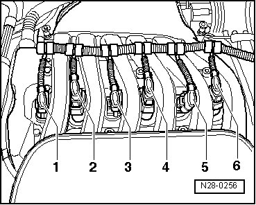 - Using the assembly tool (T10118) , disconnect connectors from ignition coils 1 through 6.