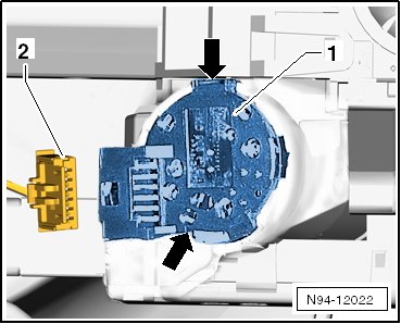 - Pull out ignition/starter switch - 1 - from steering lock housing.