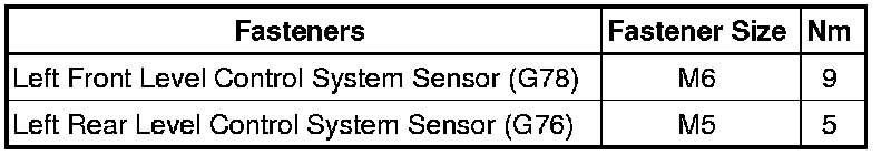 Level Control System Sensor, Tightening Specifications