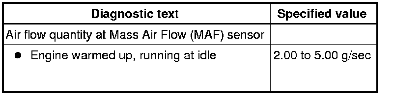 - Using the scan tool, Check the air flow quantity of the Mass Air Flow (MAF) Sensor (G70) at idle: