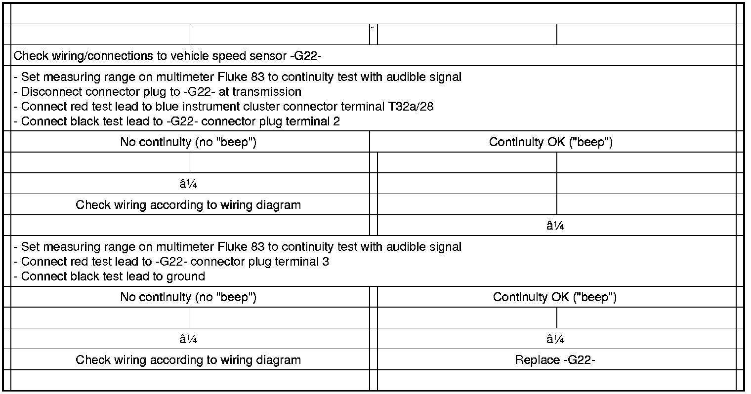 Checking speedometer vehicle speed sensor (VSS) -G22-