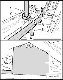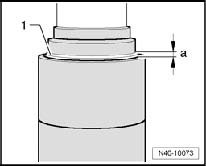 - Press bonded rubber bushing - 1 - in until dimension - a - is reached.