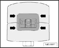 - Press out both bonded rubber bushings simultaneously, as depicted in illustration.
