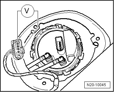 - Remove cover - 1 - from fuel delivery unit in direction of arrow - 2 -.