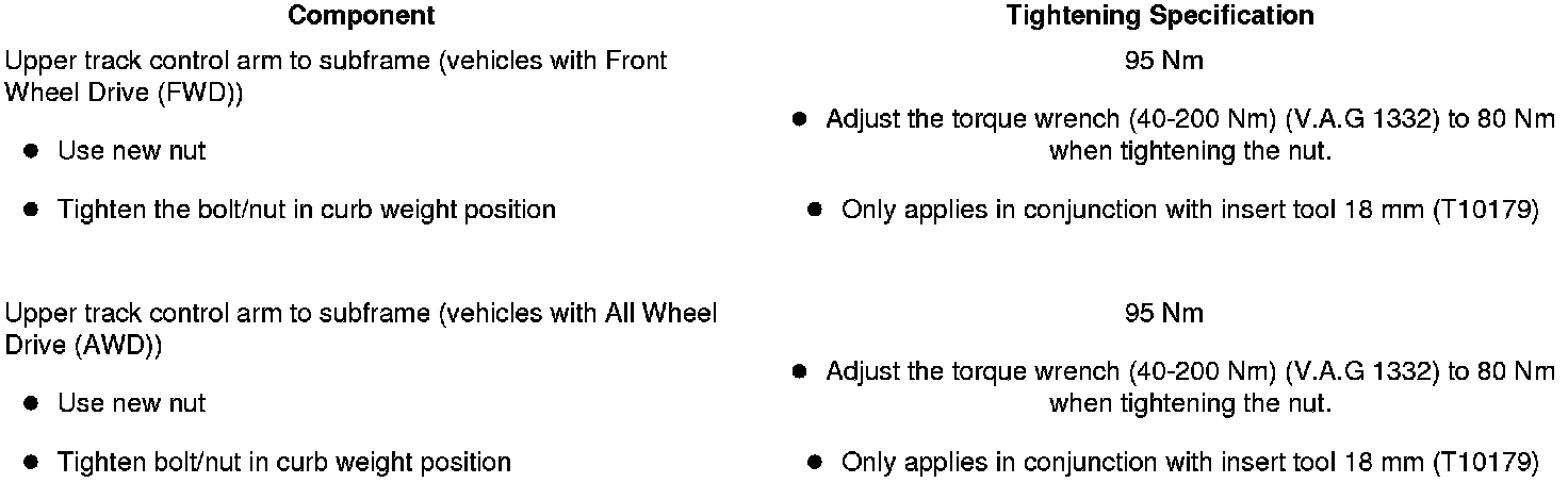 When using the insert tool 18 mm (T10179) , tighten the nut to 80 Nm.
