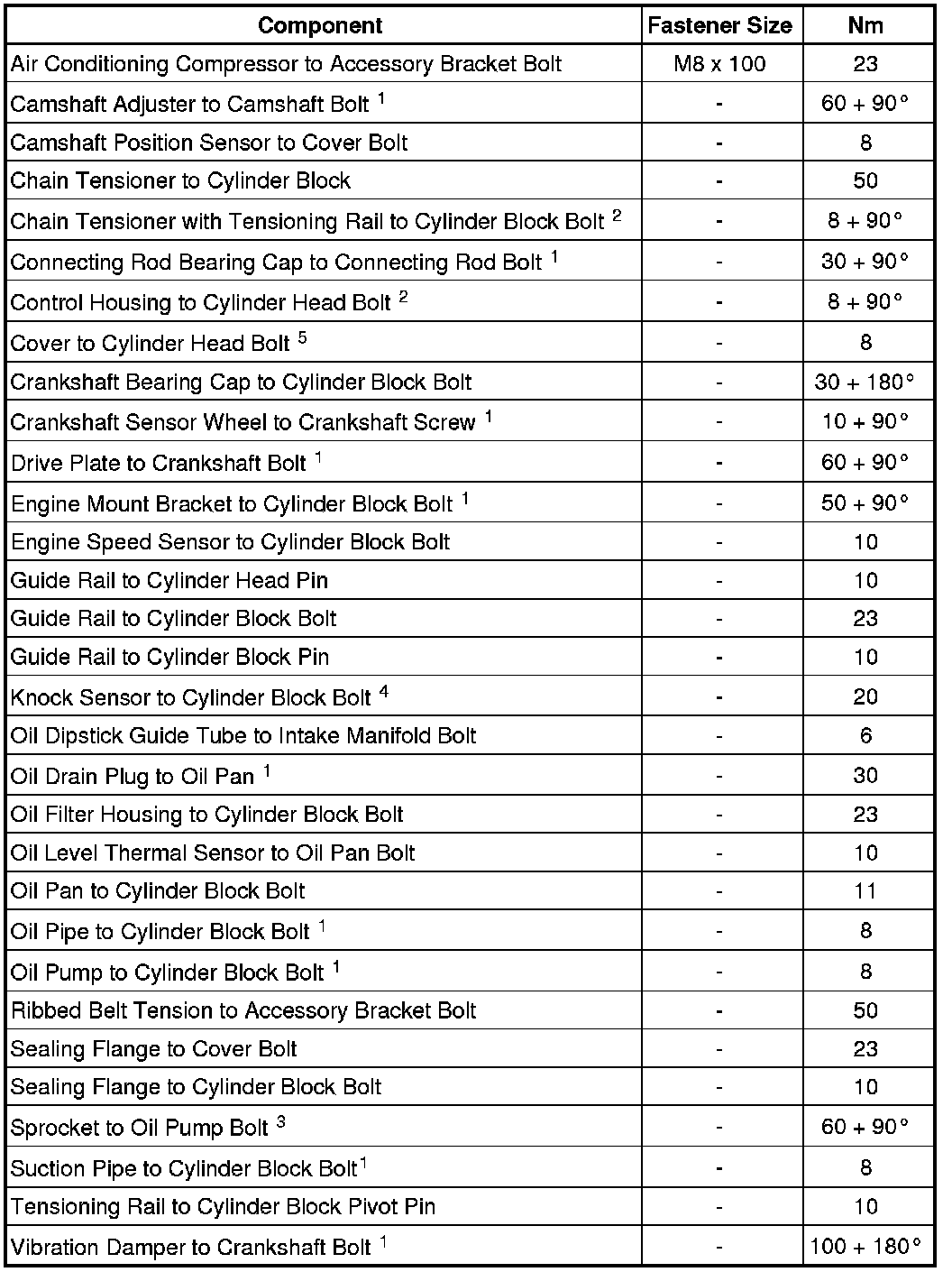Crankshaft, Cylinder Block - Fastener Tightening Specifications