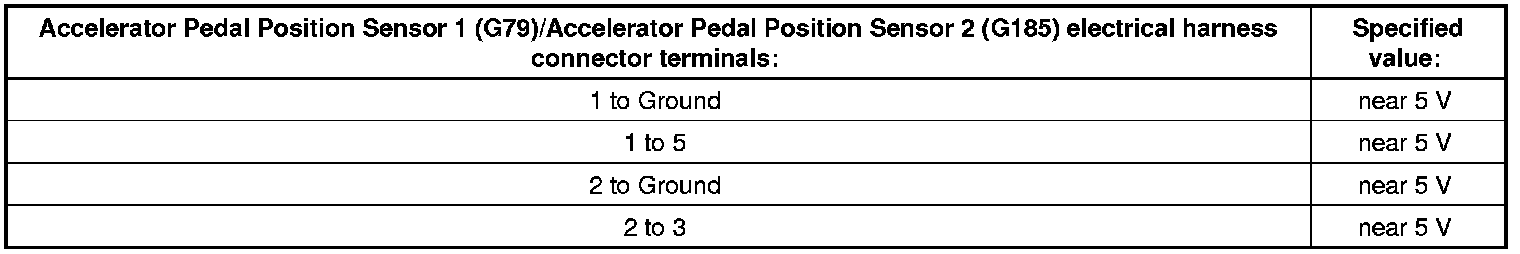 - Replace the Accelerator Pedal Position Sensor 1 (G79)/Accelerator Pedal Position Sensor 2 (G185). Refer to the Repair Information.