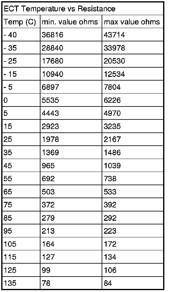 Specified values: 1.5 ohms Max. and 0 volts disconnected from ECM.