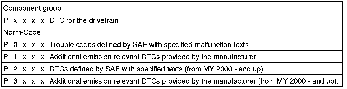 The DTC's are sorted by SAE code with the DTC tables consisting of a 5-digit alpha-numeric value.