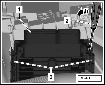 - Remove the ECM - 1 - from the guides - 3 -.