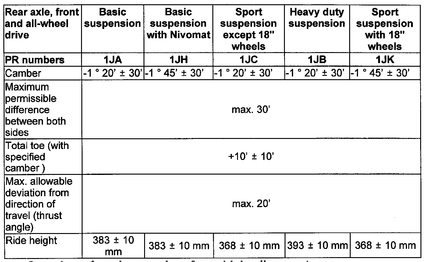 Wheel Alignment Specifications