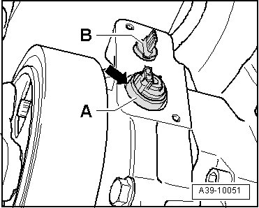 - Carefully grasp the Haldex clutch control valve - A - with pliers on the metal housing - arrow - and remove.