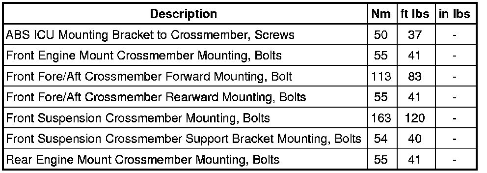 Front Subframe: Specifications