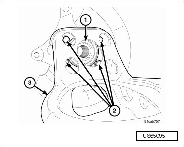 - Remove bolts (2) securing hub and bearing (1) to axle (3).