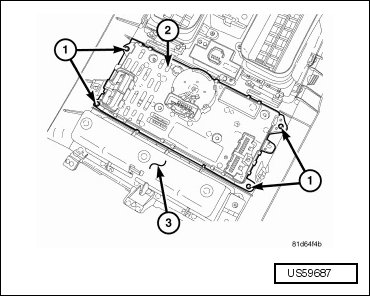 - Remove the center bezel (3) from the instrument panel and place it on a workbench.