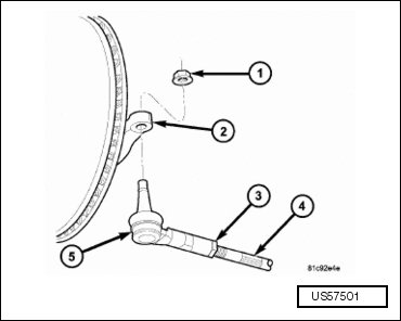 - Grasp inner tie rod at serrations (4) and rotate as necessary to adjust front toe to preferred toe specification. Refer to => [ Wheel Alignment ] Wheel Alignment.