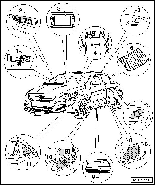 • Transport protection device of CD changer in RCD 510, activating/deactivating, refer to => [ RCD 510 (Premium 8) Radio ] RCD 510 (Premium 8) Radio.