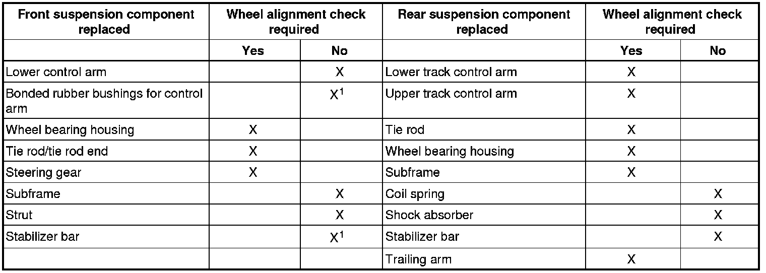 • Suspension components have been removed or replaced.