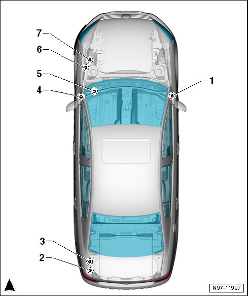 • Fuse assignment => [ Fuse assignment on , inside the luggage compartment in the rear on the left side (AXZ, BLV, BWS) ] Fuse assignment on fuse panel F -SF- , inside the luggage compartment in the rear on the left side (AXZ, BLV, BWS)
