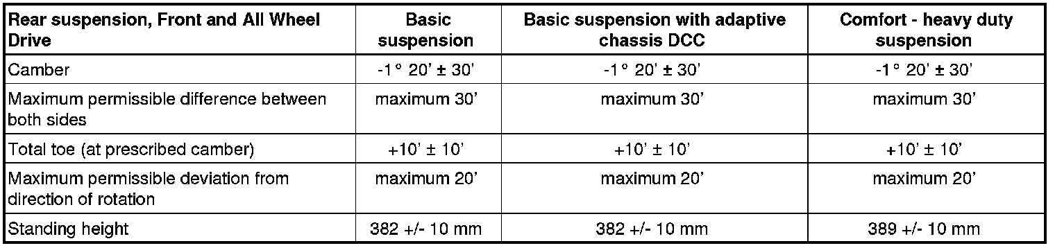 Wheel Alignment Specified Values