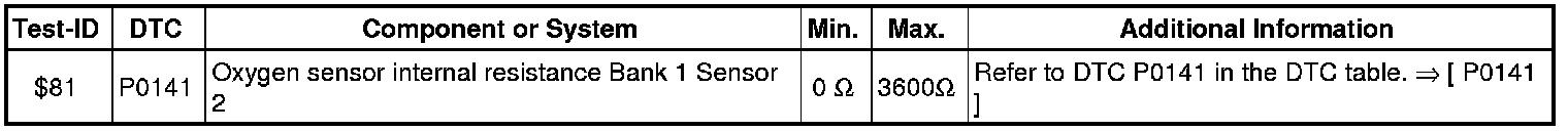 - If any of components or systems fail to meet the specified values. Refer to Diagnostic "Mode 03: Interrogating Fault Memory" to check for stored DTC's or the corresponding diagnostic repair procedure => [ Diagnostic Mode 03 - Read DTC Memory ]Diagnostic Mode 03 - Read DTC Memory.