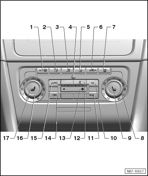 • When the OFF button is activated, the Climatronic does not work. There is no heating or ventilation.