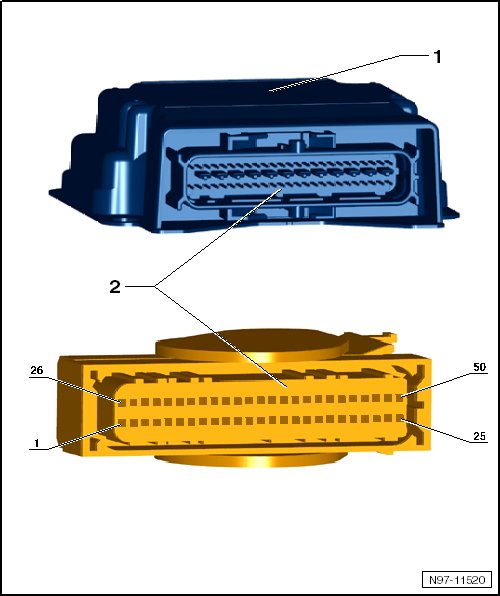2 50-pin connector -T50- on the wiring harness