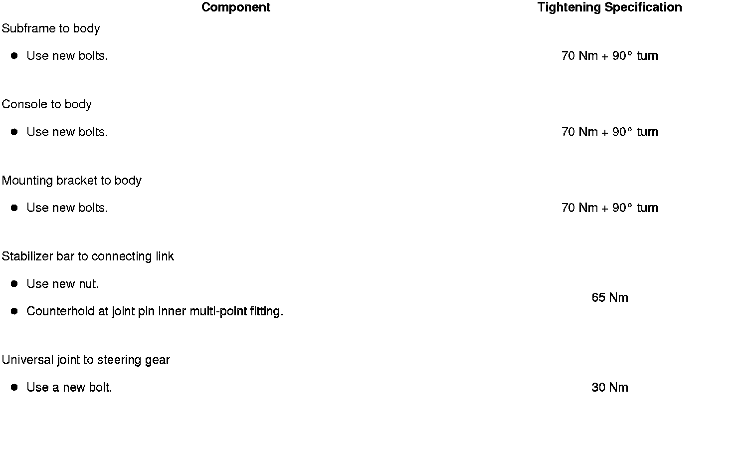 - Subframe, securing, refer to => [ Subframe and Consoles, Securing ] Front Suspension